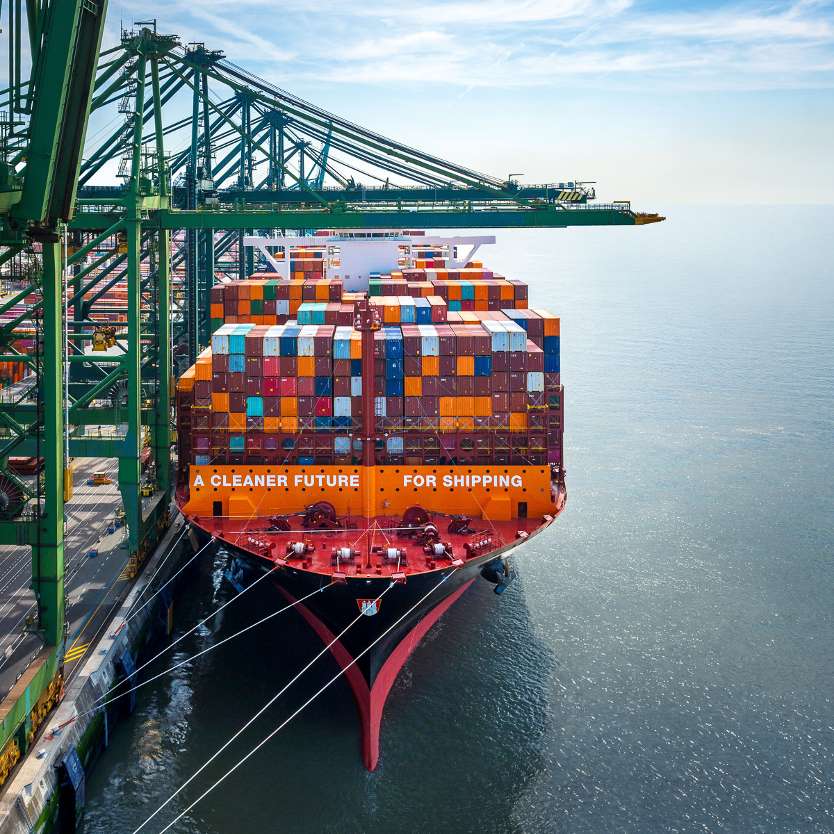 In 2025, the final five of a total of twelve ultra large container ships of the Hamburg Express class were commissioned. Thanks to their dual fuel propulsion systems, they can operate, among other fuels, on biomethane. By the end of the decade, around 50 vessels in our fleet will be equipped with alternative propulsion systems. At the same time, we are already among the largest users of biofuels in the industry and have concluded long term supply agreements for biomethane and green mmethanol. This enabled us to win the second tender of the Zero Emission Maritime Buyers Alliance (ZEMBA) in the reporting year as well.